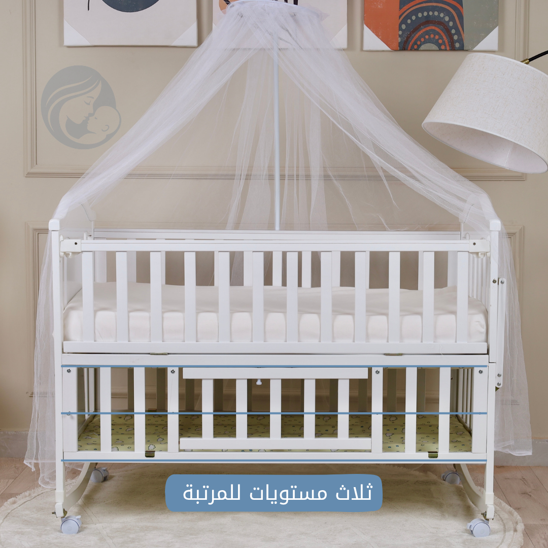 • مرونة في الاستخدام: يمكن ضبط السرير على ارتفاعين مختلفين ليتناسب مع مراحل نمو طفلك.