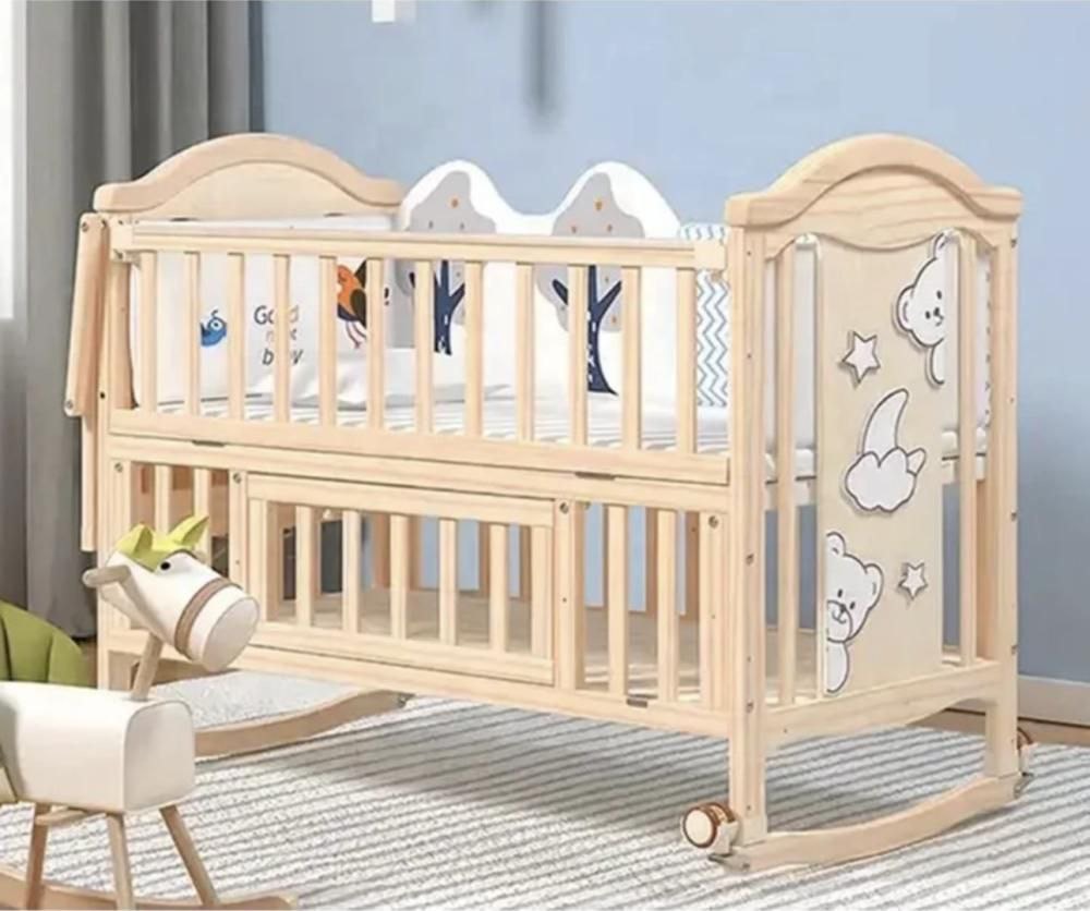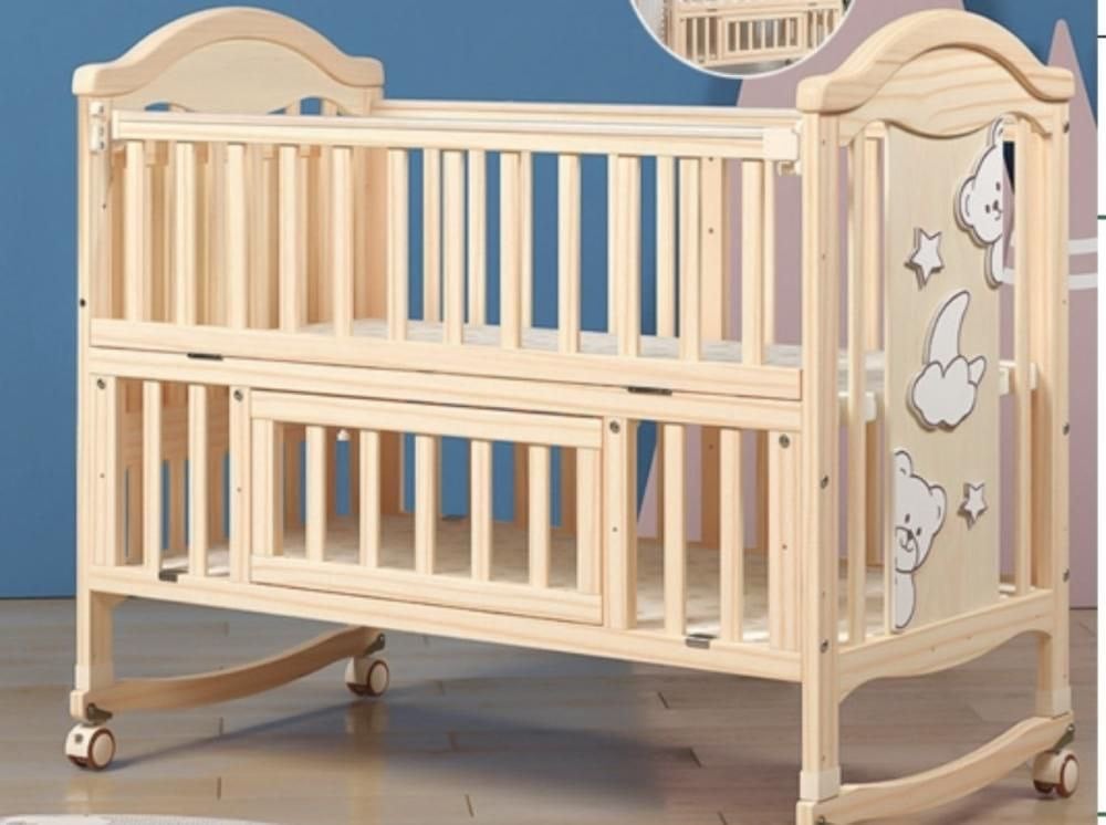 امنحي صغيرك بداية آمنة ومريحة مع سرير الأطفال الخشبي الأنيق بقياس 60×110 سم، المصمم خصيصًا ليكون ملاصقًا لسرير الأم، مما يتيح لكِ العناية بطفلك ورضاعته ليلًا بسهولة دون الحاجة للنهوض.